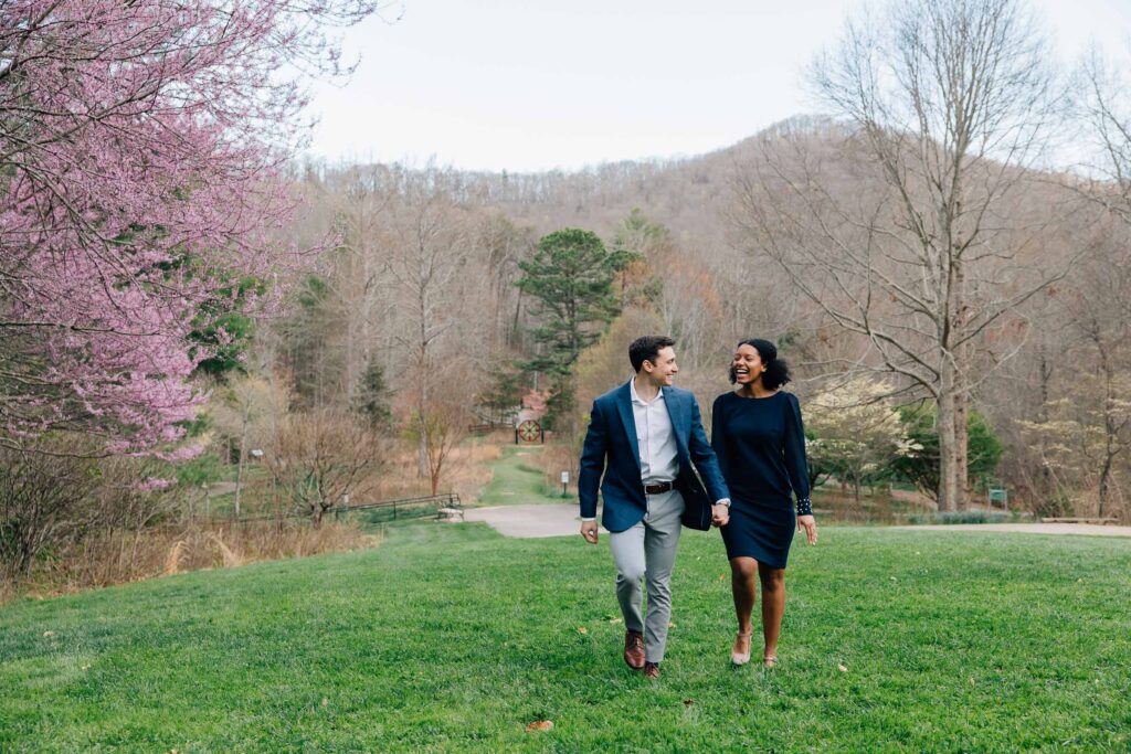 The North Carolina Arboretum is one of the most reliable Asheville proposal locations because of its variety. There are multiple gardens, open areas, and more tucked-away paths, which means flexibility if something changes. It’s beautiful year-round, especially in spring when everything is blooming, and there are always options to create a moment that feels natural and personal. Even winter is amazing because of Winter Lights, though it can get pretty crowded during the holidays.