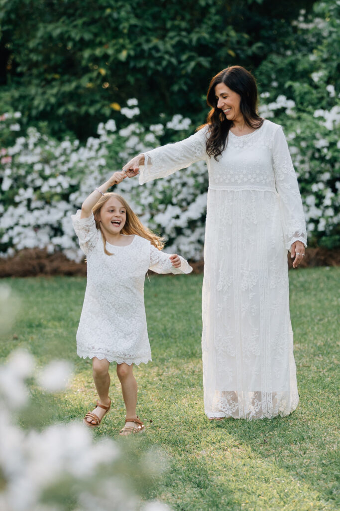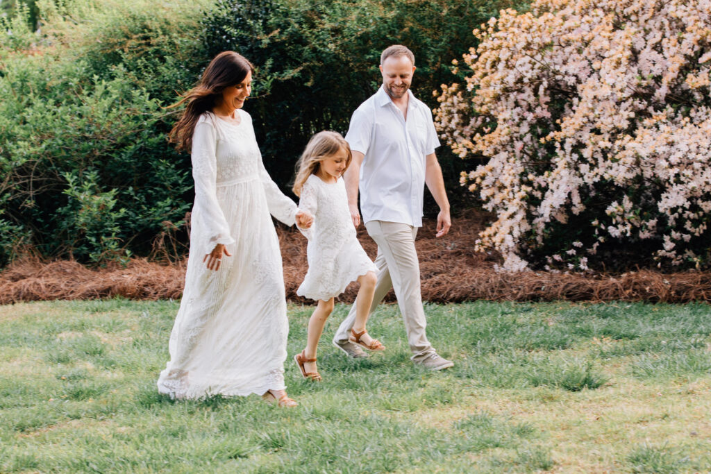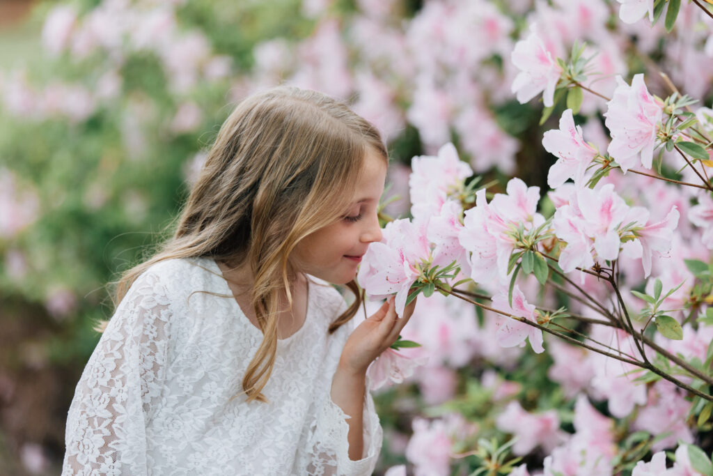 Spring is one of the best times for family photos in Salisbury, NC, especially when the azaleas are in bloom at Hurley Park. March is when the tulip magnolias burst out in gorgeous pink, white, yellow and purple blooms, then the cherry blossoms, tulips and azaleas. In summer, peonies and lilies take center stage. The foliage in the fall is incredible as well. There’s always something beautiful in Hurley Park.